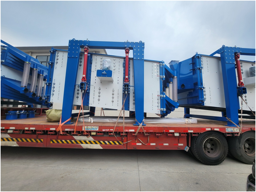 本次發(fā)貨的是客戶在原有的壓裂砂生產(chǎn)線增加篩分產(chǎn)能,新增加三臺2040型雙四層方形搖擺篩分系統(tǒng),由FU刮板機(jī)、篩分暫存?zhèn)}、流量控制蝶閥、散風(fēng)裝置及成品輸送系統(tǒng)組成。